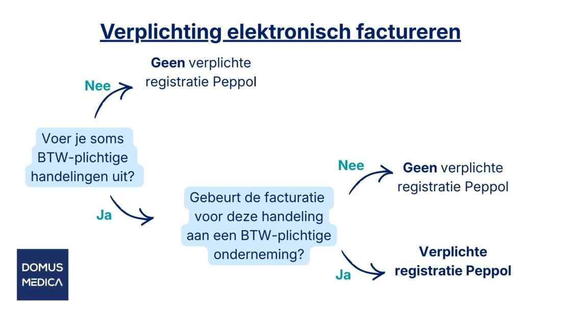 De beslisboom om te bepalen of je verplicht bent je aan te sluiten bij Peppol en elektronische facturatie te gebruiken gaat als volgt: